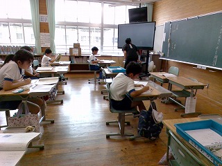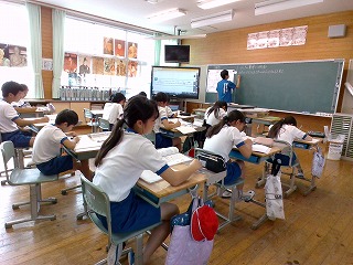 5年生 理科 「流れる水のはたらき」映像教材を食い入るようにみていました。