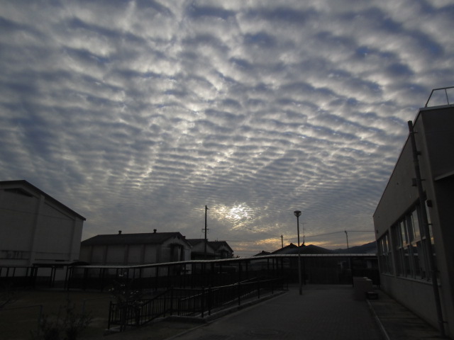 HOME > Blog > 学校の様子 > 10.19(月) 秋真っ盛り 10.19(月) 秋真っ盛り 入力日2020年10月19日 閲覧数256 「食欲の秋」、「スポーツの秋」、「芸術の秋」、「読書の秋」等、様々な修飾語が似合う秋ですが、校庭の様々な風景からも本格的な秋の到来を感じます。そのいくつかを紹介いたします。学年園のお米、サツマイモ、そして空一面のうろこ雲等です。ぜひ、学習面でも大いに努力し、「勉学の秋」も加えていきたいものです。 前へ 一覧へ戻る 次へ