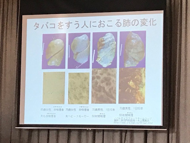 HOME > Blog > 学校の様子 > 12.10(木) 防煙教室 12.10(木) 防煙教室 入力日2020年12月10日 閲覧数554 今日の5時間目に、6年生を対象に、「防煙教室」が開かれました。たばこを吸うとどれだけ体に害を及ぼすか、プレゼンの画面を見せながらわかりやすくお話をしていただきました。1箱440円のたばこを毎日1箱ずつ吸うと、およそ16万円になることも紹介されながら、お金を出して体に悪いことをしている状態ですね。さらに、なかなかやめられなくなるという中毒の症状まで教えていただきました。 前へ 一覧へ戻る 次へ