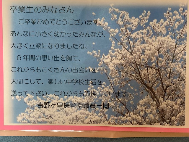 HOME > Blog > 学校の様子 > 3.22(月)祝電・祝詞 3.22(月)祝電・祝詞 入力日2021年3月24日 閲覧数7,390 第74回卒業式に際し、ご縁があった方々からたくさんの祝電・祝詞をいただきました。この場をお借りして心より御礼申し上げます。その中からいくつかをご紹介させていただきます。特に、これまで担任していただいた先生からの祝詞は子ども達にとっては格別でしょう。卒業生のこれからの活躍を祈っています。 前へ 一覧へ戻る 次へ