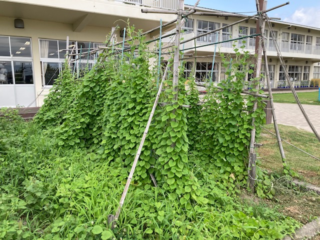 HOME > Blog > 学校の様子 > 7.11(月) グリーンカーテン 7.11(月) グリーンカーテン 入力日2022年7月15日 閲覧数355 校長室の西側のスペースに、恒例のアサガオのグリーンカーテンを作っています。今回は、これまでの経験を生かし、地面を柔らかくして根が張りやすいようにしたことと、肥料をたぷっりあげたので、成長が著しく、しかも大変元気に育っています。まだまだあと1m以上は伸びると思います。そして、アサガオの花の見頃は、8月下旬~9月上旬です。お楽しみに! 花壇もどんどん栄えています。 前へ 一覧へ戻る 次へ