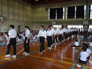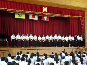 HOME > 学校生活の様子 > 今日のキラリ > R7年度教育自習が終わりました R7年度教育自習が終わりました 入力日2025年9月29日 内容8月29日から9月25日までの教育実習を終えた教育実習生とのお別れの式がありました。 6年生から,児童代表のお別れの言葉がありました。 教育実習の先生方との楽しい思い出を伝えてくれました。 教育実習の先生方からは,とても深い学びがあったことなど,子供たちへの感謝の言葉がありました。 その後,6年生の伴奏で校歌を歌い,今日までの日々を懐かしみました。 子供たちは,また教育実習の先生方に会えることを楽しみにしていました。 閲覧数115 前へ 次へ