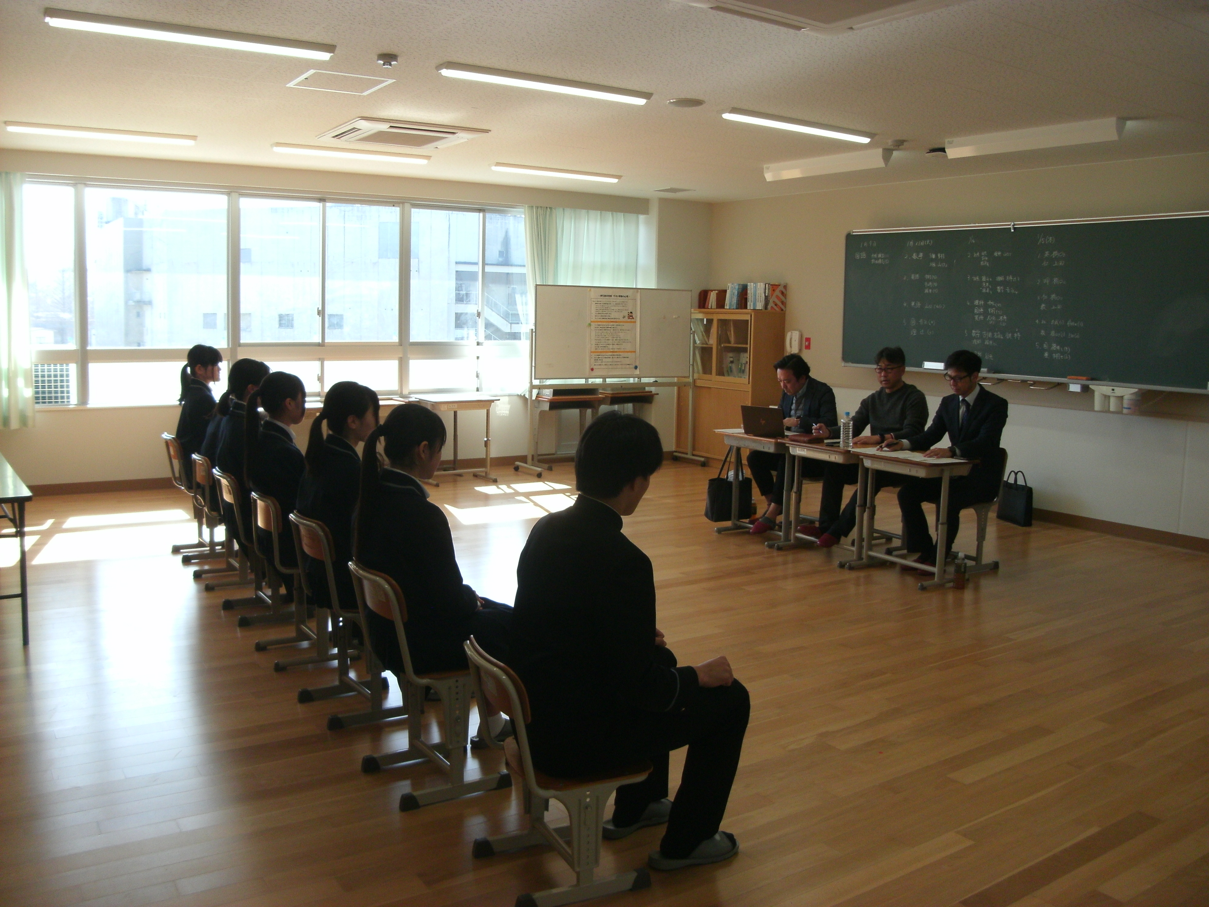 3年生の分会行事の一環で、面接官は本校の学校運営協議会(コミュニティスクール)の委員の皆様にご協力いただきました。
