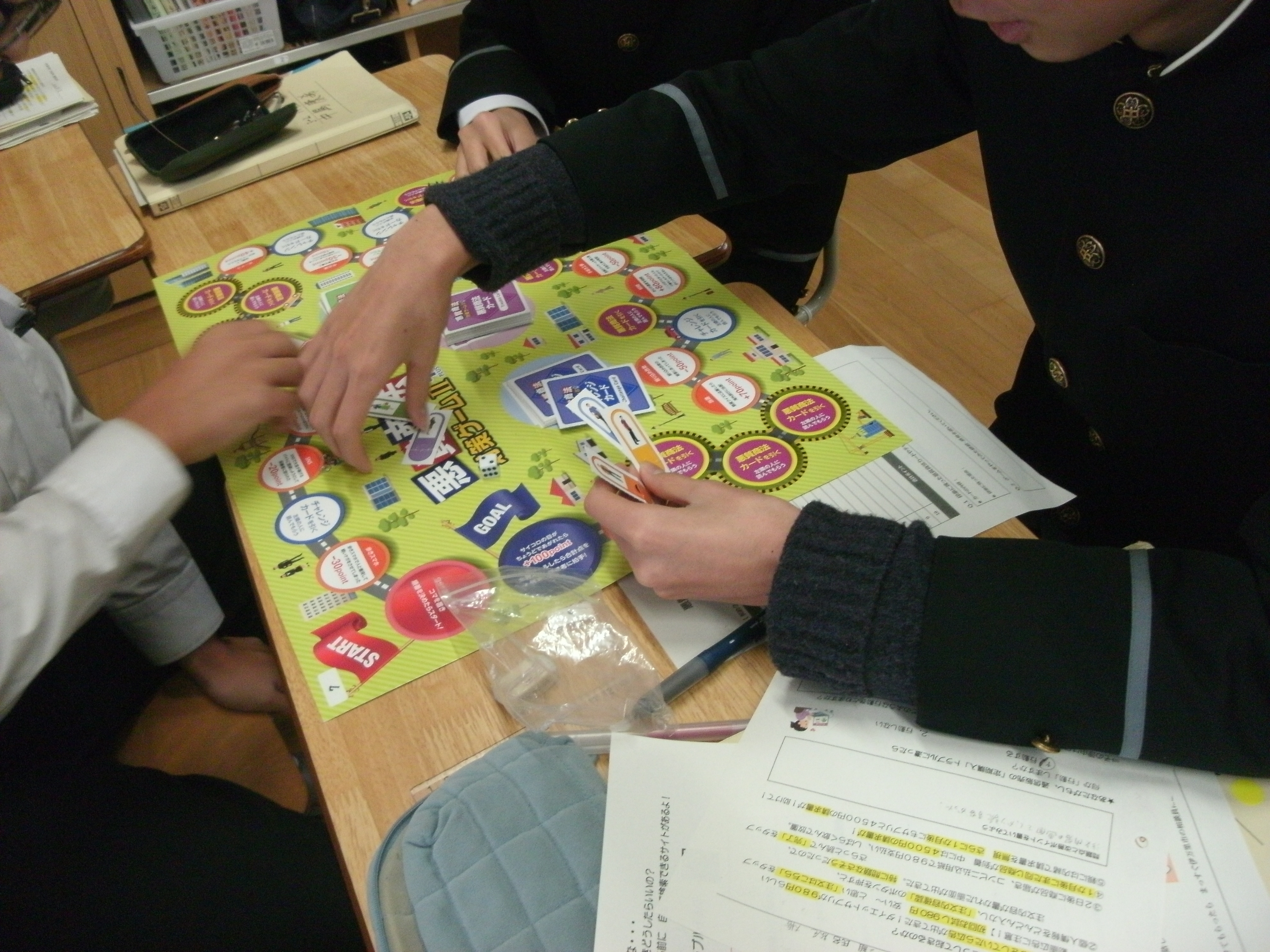 15日(月)、3年生の社会科の授業で消費者教育出前講座がありました。伊万里市消費生活センターの消費生活相談員を講師として招聘し、消費者教育の講話をおこなっていただきました。未成年者のスマホやインターネットによるトラブルが多く、特に成人年齢が18歳に引き下げられ、消費者を取り巻く環境も大きく変化しています。講座では、様々なトラブルの事例をもとに、その危険性をわかりやすく説明してもらいました。グループ活動では、「悪質商法すごろくゲーム」を通して楽しみながら理解を深めることができました。