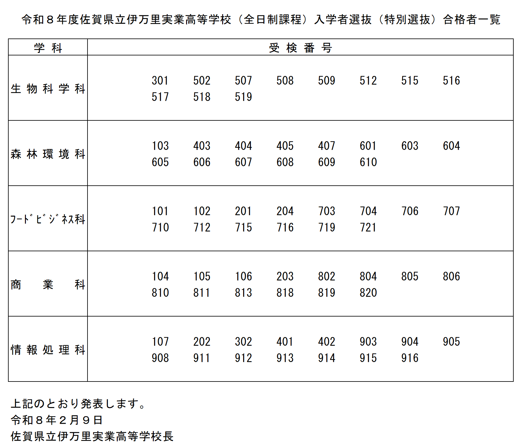 令和8年度特別選抜合格者発表