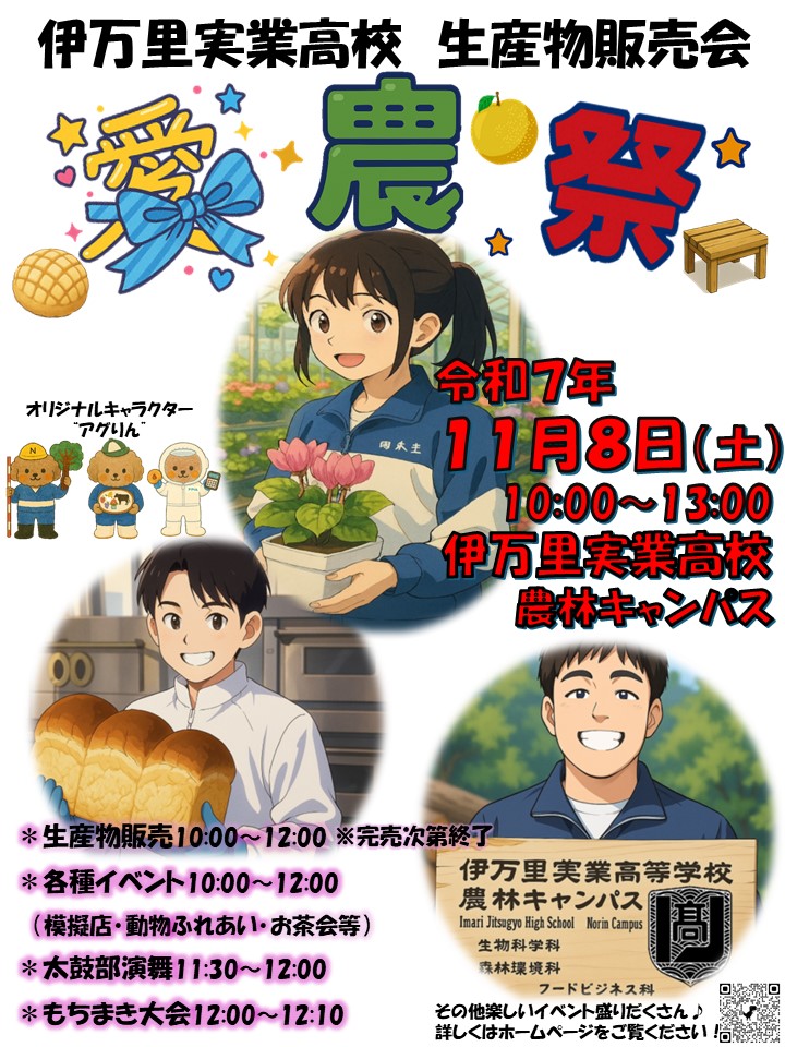 HOME > 愛農祭(生産物販売会) > 令和7年11月8日(土)愛農祭(生産物販売会)を開催します。 令和7年11月8日(土)愛農祭(生産物販売会)を開催します。 入力日2025年9月25日 閲覧数59 前へ 一覧へ戻る
