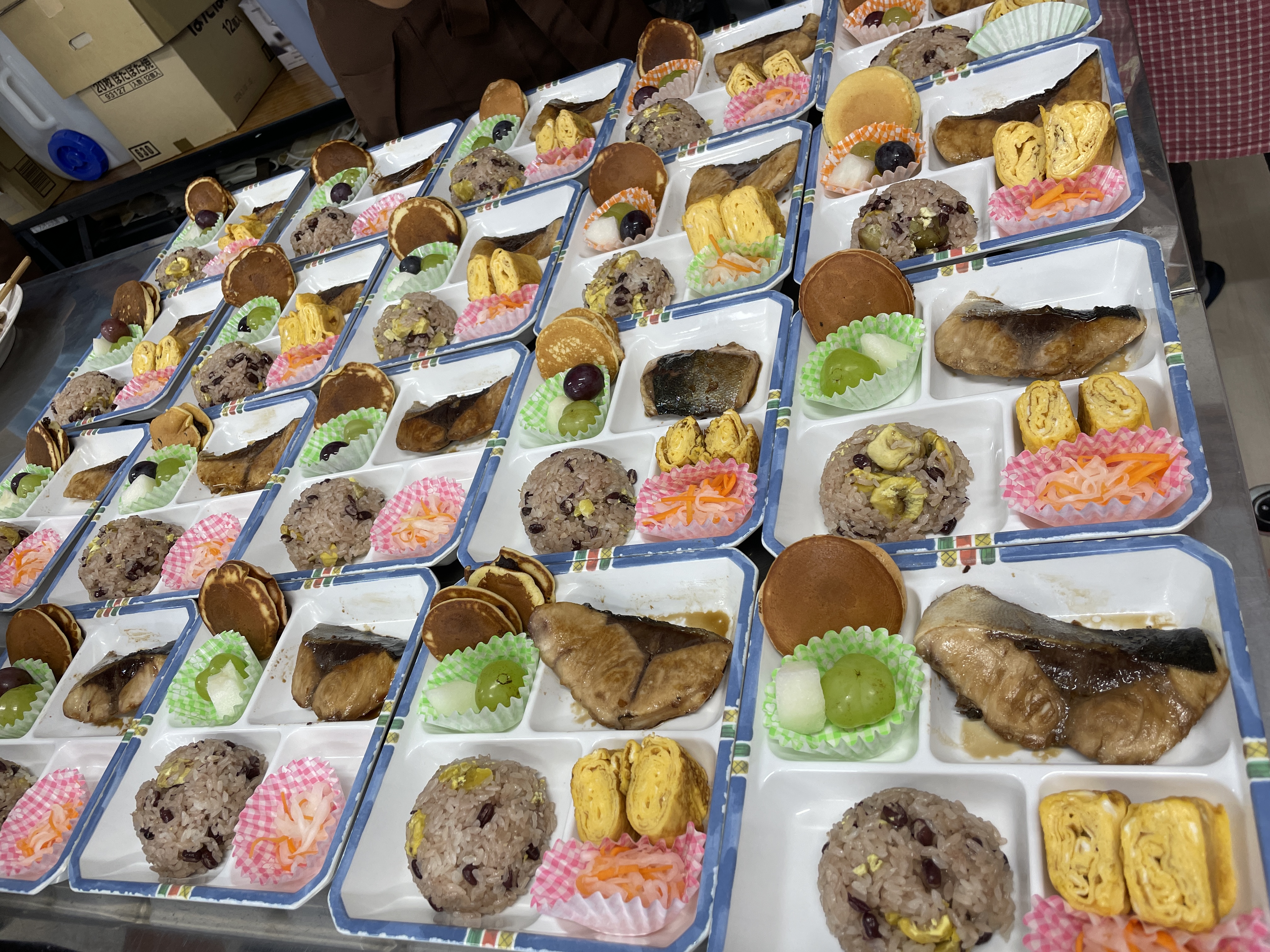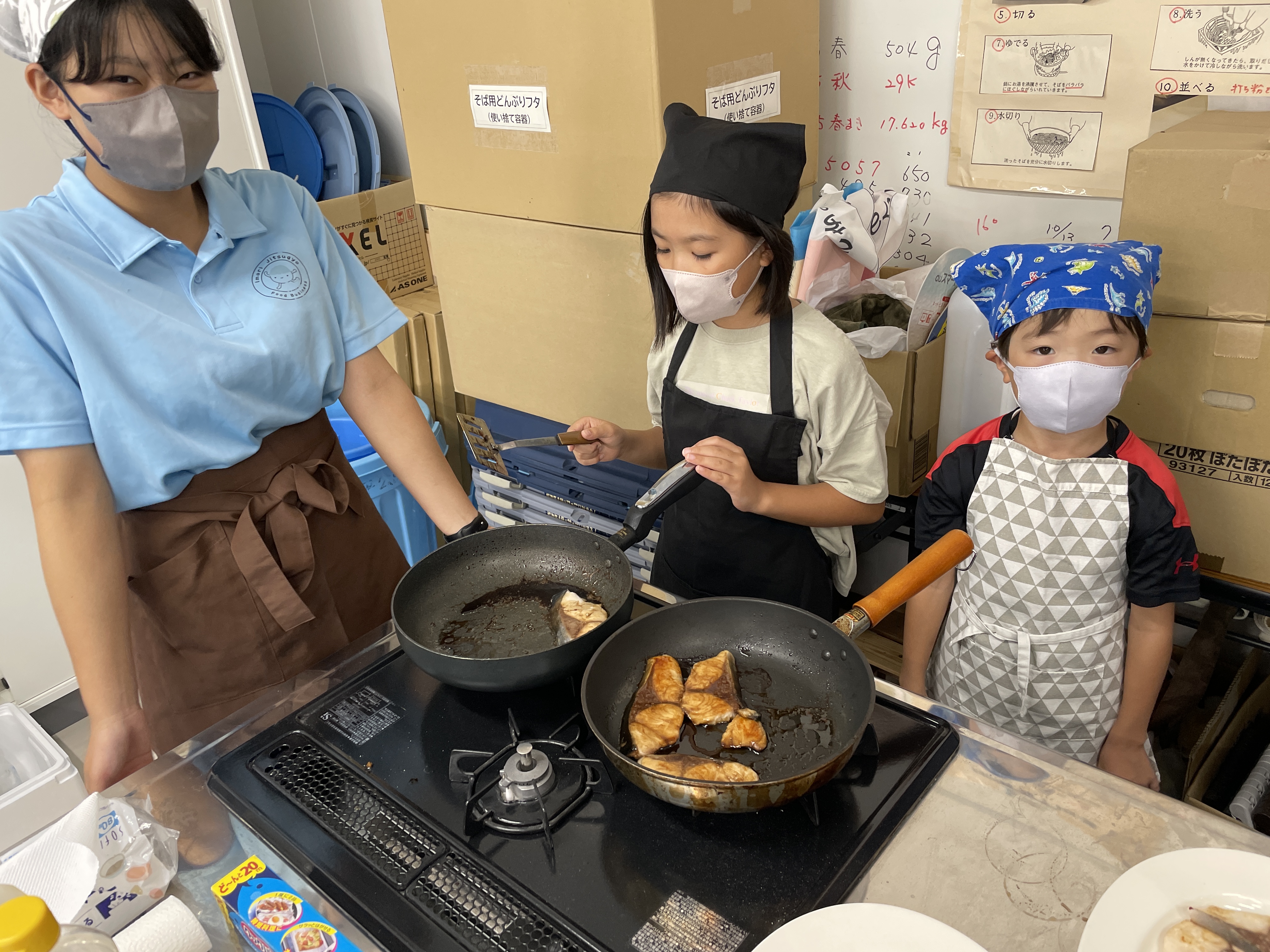 9月21日(日)大坪コミュニティセンターにてフードプロジェクト部が学びのkidsレストランを開催しました。今回はNPO法人こすもす村と、おくんち振興会との共同企画として、10月に開催されるおくんちにちなんだメニューを提供しました。参加者に作ってもらう体験ブースも準備し、楽しみながらおくんち料理に親しんでもらいました。会場には食材を提供してくださった企業の方々もご来場され、地域一体となって食品ロス削減や文化継承に取り組むことの重要性を改めて感じました。