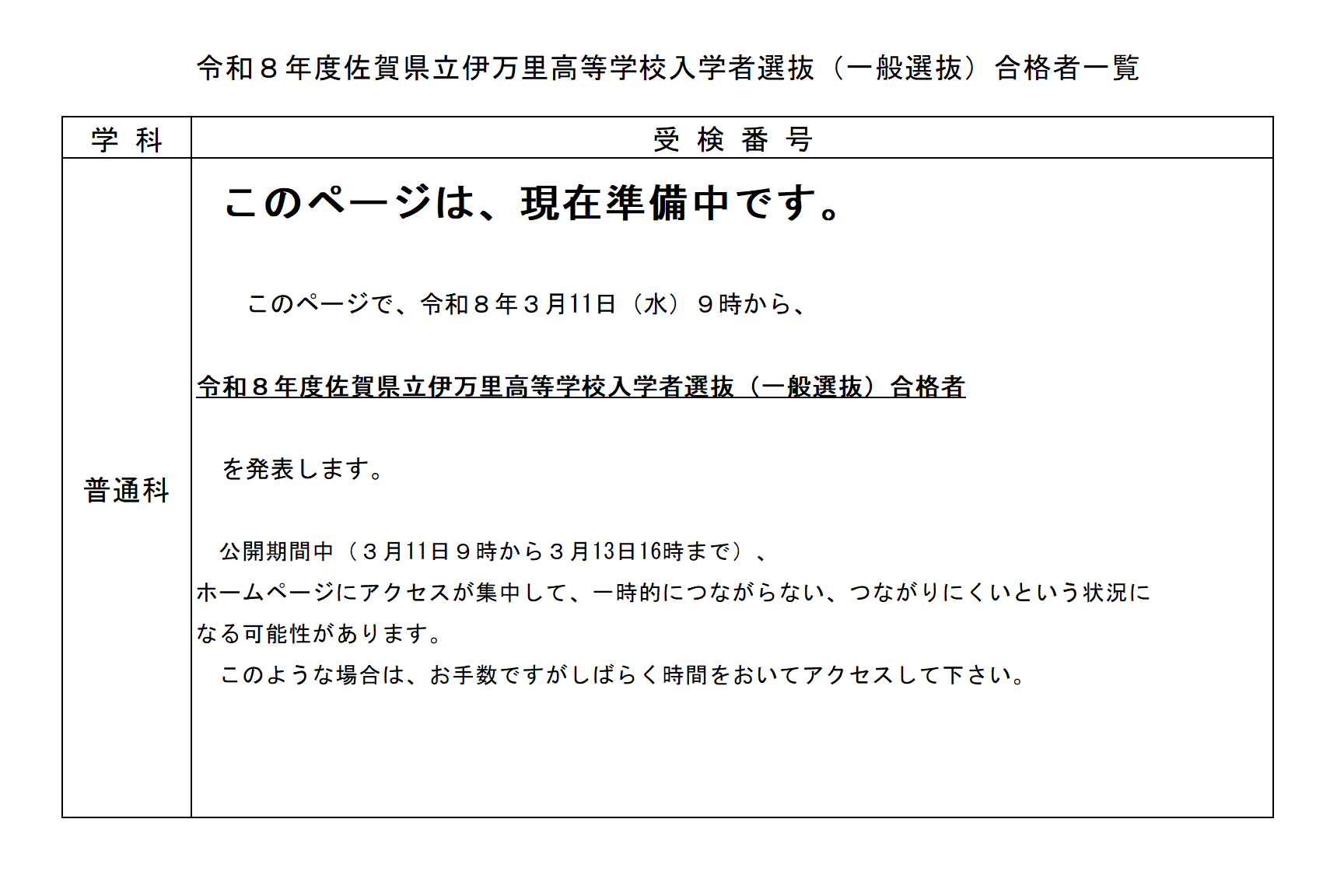 令和8年度一般選抜合格者発表