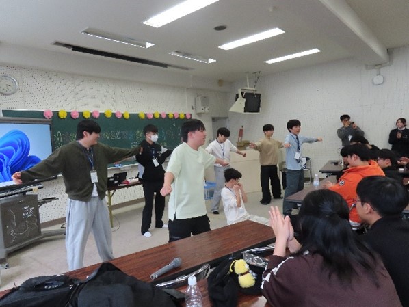 交流会では、生徒が韓国語で伊万里市を紹介するプレゼンテーションを行ったほか、柳韓工業高校の生徒によるダンスパフォーマンスやイントロクイズなどの企画を通して、会場は大いに盛り上がりました。また、座談会では、好きなアーティストの話題など共通の関心事をきっかけに、お互い に積極的に交流する姿が見られました。