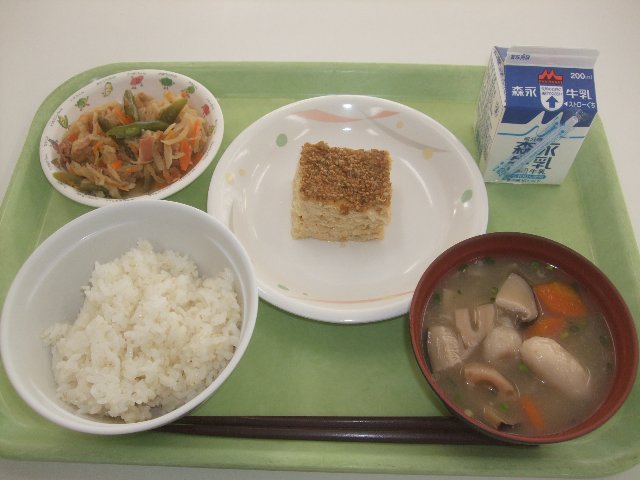 麦ごはん、牛乳、松風焼き、切干大根の炒り煮、のっぺい汁 845kcal