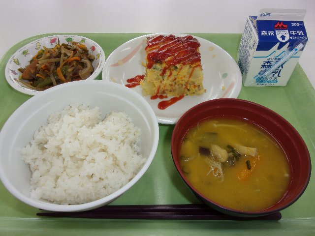 麦ごはん、牛乳、スパニッシュオムレツ、五目きんぴら、みそ汁 794kcal