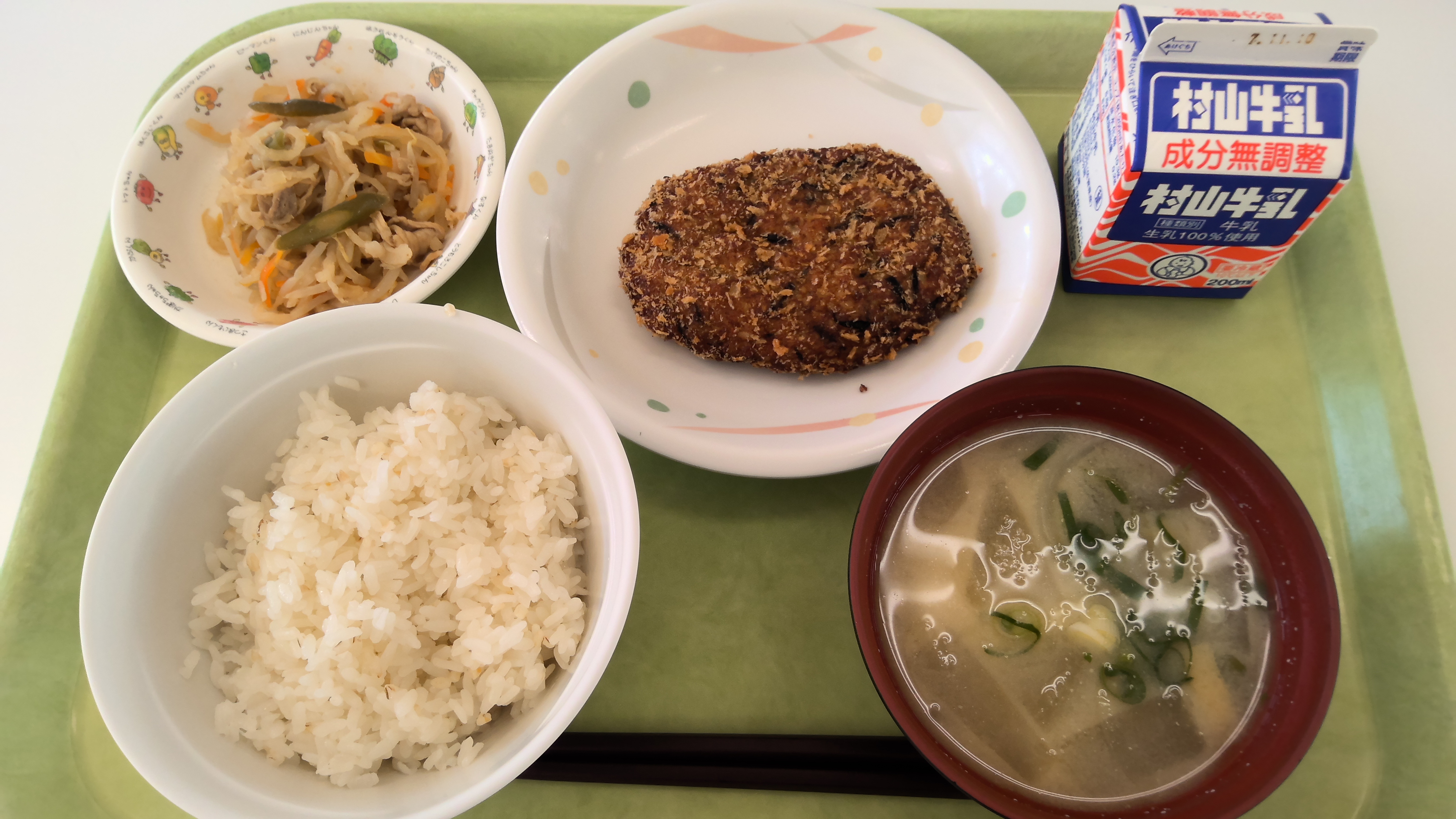 献立名:麦ごはん、牛乳、手作りギョロッケ、切干大根の炒り煮、みそ汁