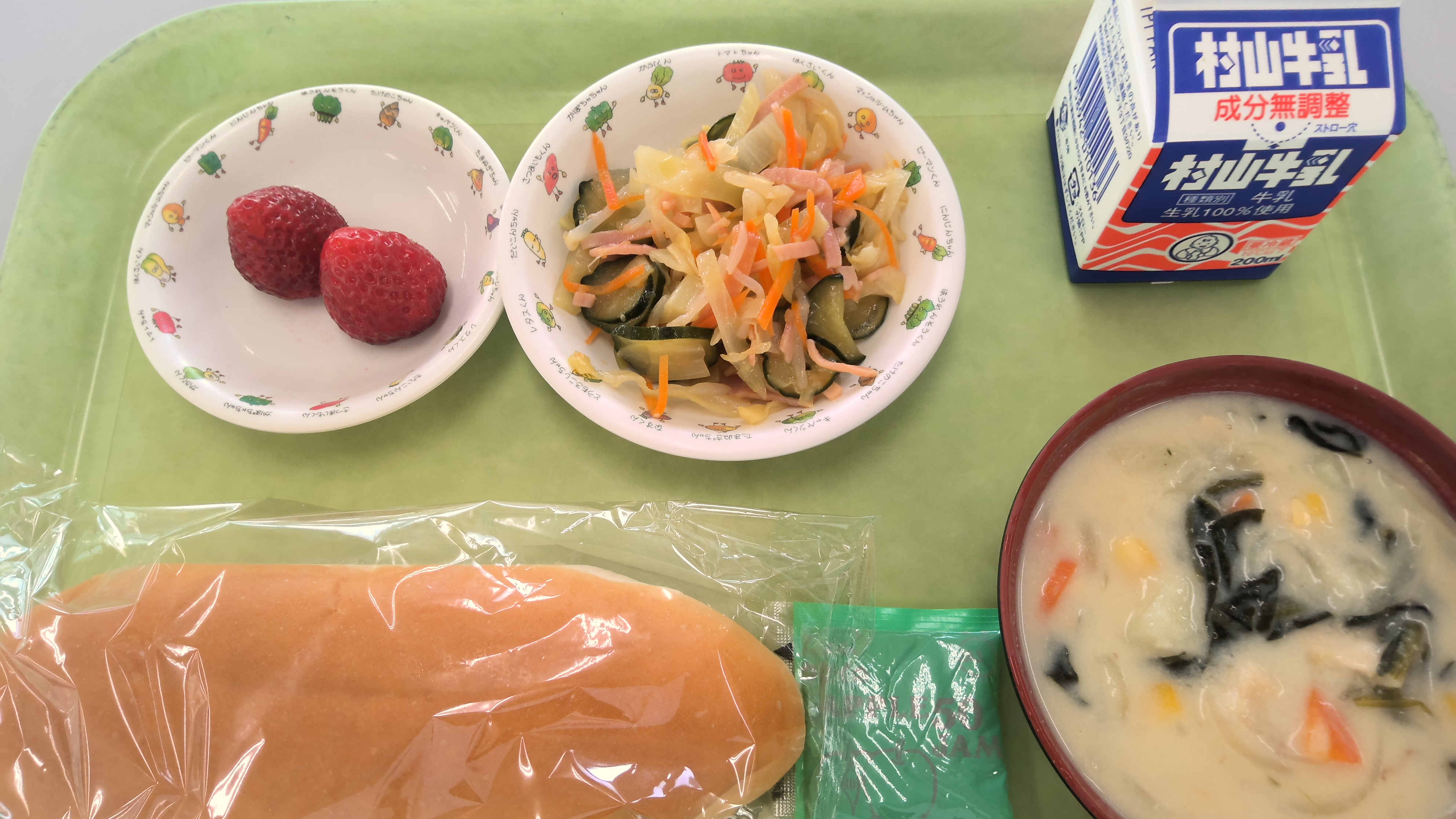 今日は、いちご🍓が登場しました。果物が大好きな子どもたちの、おかわりの手✋がたくさん挙がりました!