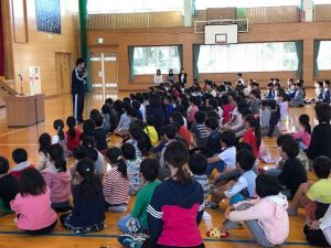 HOME > > 11月全校朝会~今年の目標を再確認~ 11月全校朝会~今年の目標を再確認~ 入力日2019年11月28日 閲覧数232 ■10月28日の全校朝会では、今年がんばってほしい4つのことについて、振り返りを行いました。 1、立ち止まってあいさつ 2、友だちの分までくつそろえ 3、無言でがんばるおそうじ 4、広げよう ぽかぽか言葉 あいさつについては、とても上手にできる人もいますが、4月より少しできない人が増えてきているようです。くつそろえが今上手な学年は3・4年生です。お掃除はどの学年も静かにできています。一番できていないのは、「ぽかぽか言葉」。ぜひ、友だちに優しい言葉をかけてほしいと思います。 前へ 一覧へ戻る 次へ