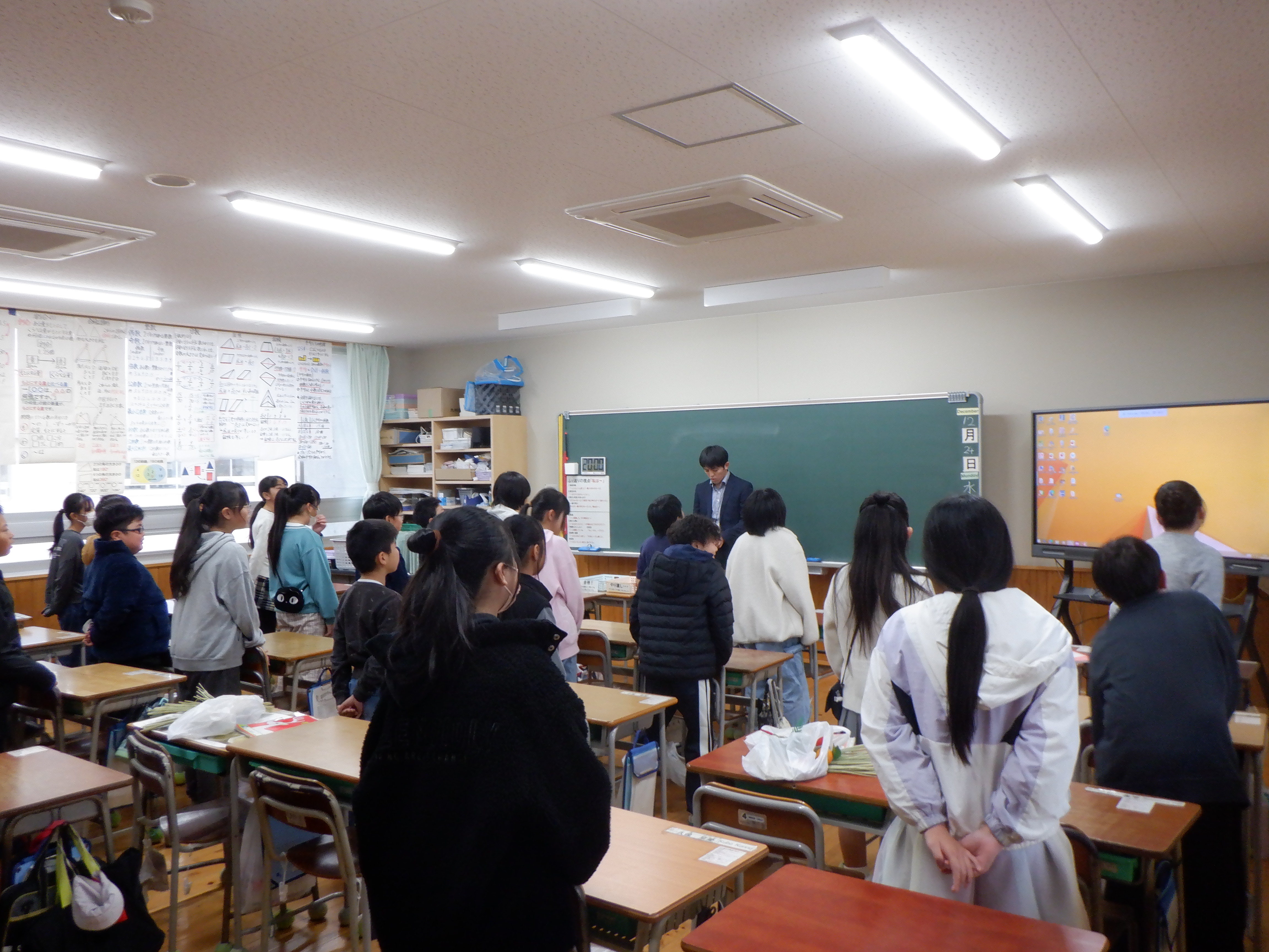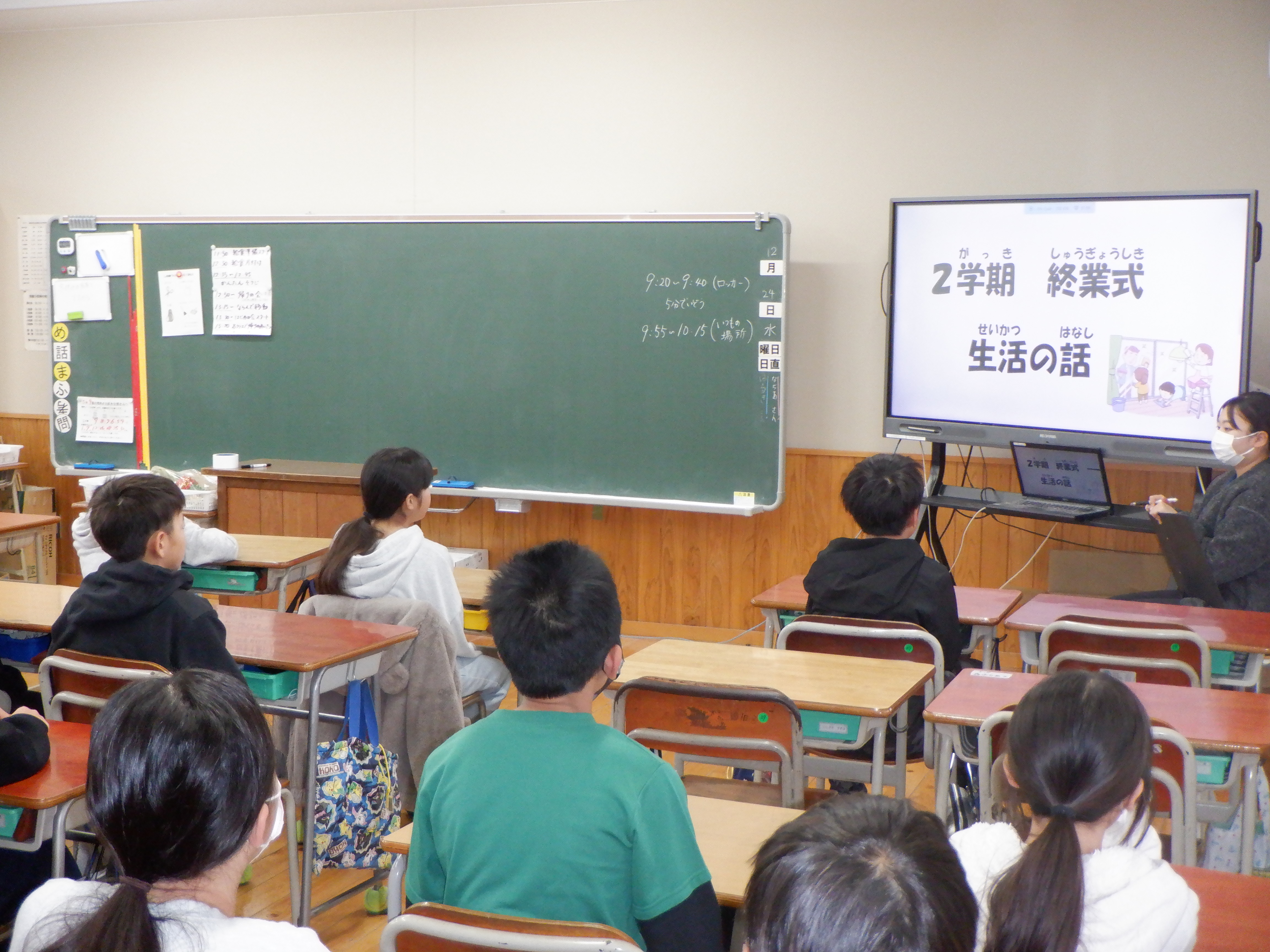 また、終業式後には、生活担当の先生から2学期の「か・き・く・け・こ」の振り返り。そして、冬休みの生活についての話がありました。