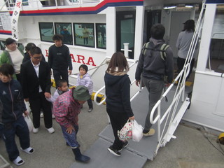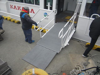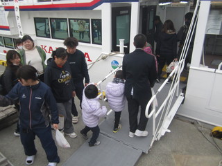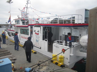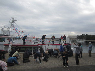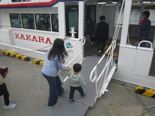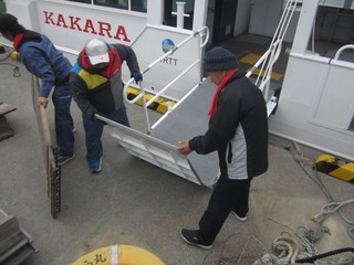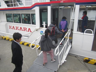 最終便で出発するかから丸の横に新しいかから丸が動かされると待っていた皆さんに船内にどうぞと案内していただきました。すべてがぴかぴか。わくわくして船内を見学させてもらいました。