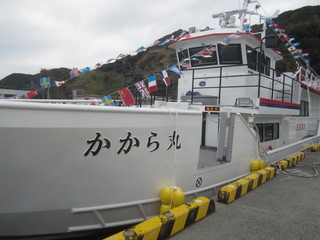 学校が終わってから加唐港へ行くとこれまで島民の皆さんや釣り・観光のお客様を加唐島まで運んでくれていた現在のかから丸と、4月から運航開始の新しいかから丸が近くに停まっていました。