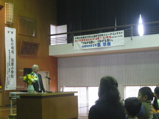講演会では加唐小学校卒業され、現在、鎮西公民館の館長をされている山下定則様に「私の母校加唐小学校」という題でお話をしていただきました。