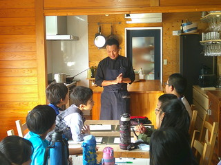 講話の後は待ちに待った試食タイムです。本場イタリアのオリーブオイルや、島の豊かな自然の中でとれた食材を使って、みるみるうちにおいしそうな料理ができあがっていきました。リアルにプロの技を見ることができ、子ども達は刺激を受けていたようです。