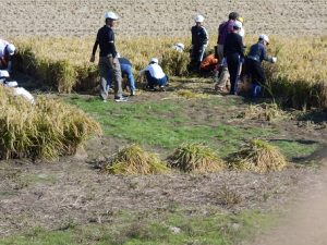 HOME > お便り > フォトギャラリー > 稲刈り 稲刈り 入力日2019年11月8日 閲覧数1,545 11月1日青空の中、5年生達の稲刈りが行われました。 田植えから約5ヶ月、雨にも負けず、風にも負けず、子ども達のあたたかい「栄養」が つまった声を聞きながら、おいしい「実」をつけてくれました。 稲を刈る手つきも、みんなとても上手に出来ていました。後は、籾→玄米→もち米に 精米され、もちつきの日を待つばかりです!今まで協力をしていただいた方達に感謝ですね。 test 前へ 一覧へ戻る 次へ