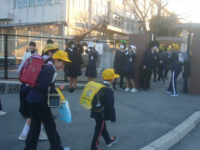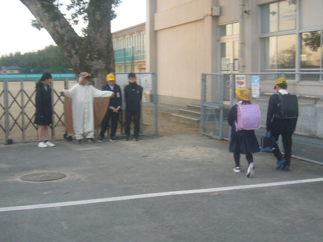 HOME > お便り > フォトギャラリー > 1/15上小「あいさつ運動」 1/15上小「あいさつ運動」 入力日2026年1月15日 閲覧数90 12月の代表委員会で話し合った「自分からあいさつする人を増やす」取り組みとして、6年生が中心となった「あいさつ運動」が始まりました。正門とくすのき側の東門に6年生が立って、下級生を迎えてくれています。かわいい着ぐるみなども準備してくれて、笑顔でのあいさつにつながっています。 前へ 一覧へ戻る 次へ