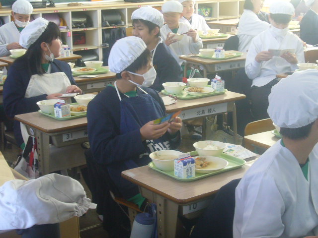 6年生がさっそくご飯にかけて、食べていました。