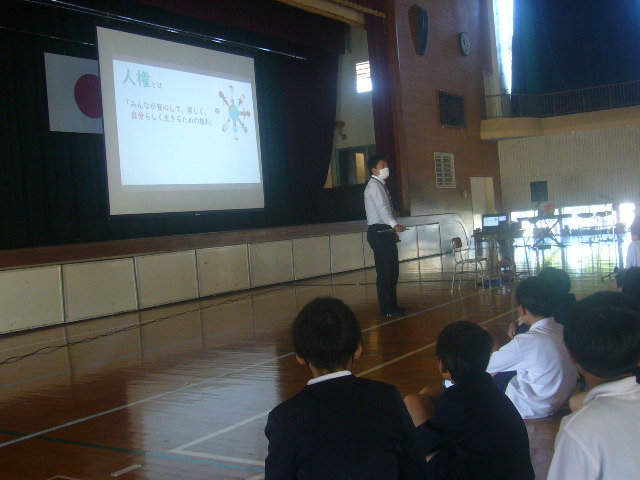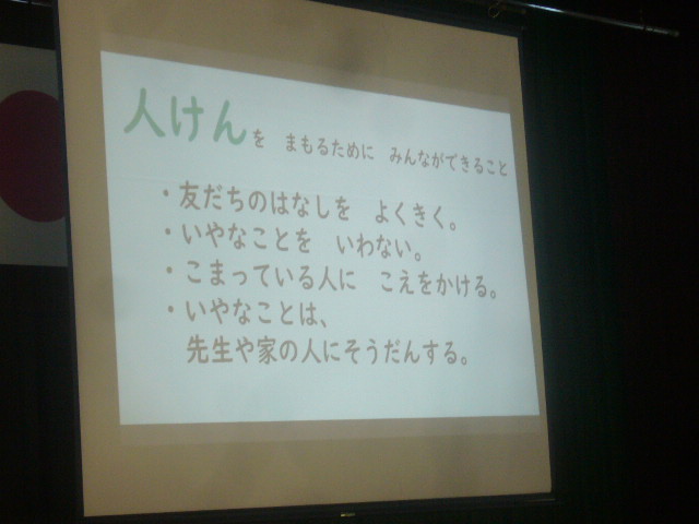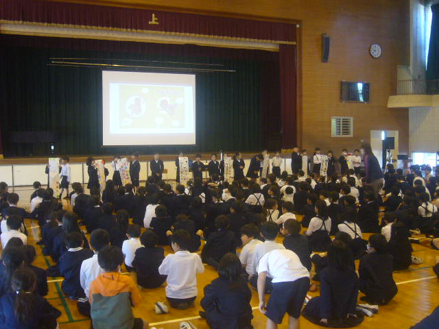 HOME > お便り > フォトギャラリー > 10/29人権集会 10/29人権集会 入力日2025年10月29日 閲覧数16 1・2・3年生の下学年と4・5・6年生の上学年に分かれて、体育館で人権集会を実施しました。集会では、人権についての話のあと、各学級で考えた人権標語の紹介とTioさんによる絵本の読み語り(下学年:「あんぱんまん」、上学年:「2番目の悪者」)とFelicheさんによる歌(「いのちのうた」)のプレゼントがありました。 一覧へ戻る 次へ