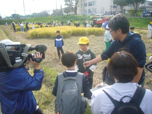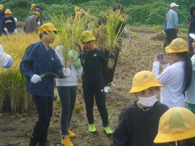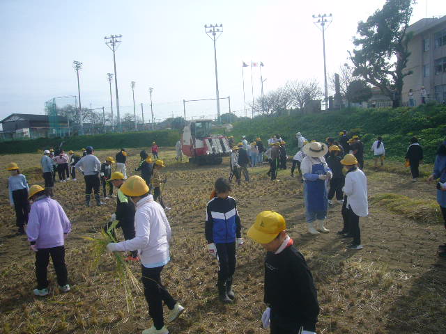HOME > お便り > フォトギャラリー > 10/30稲刈り_5年生 10/30稲刈り_5年生 入力日2025年10月30日 閲覧数23 6月末に植えた苗が、大きく育ちました。今日も町内のたくさんの方に補助していただきながら、5年生が稲刈りの体験をしました。『しあわせ』を形どった稲文字が、5年生の手で刈り取られていきました。5年生がこれから食べるおコメの味は少し変わるかもしれません。 前へ 一覧へ戻る 次へ