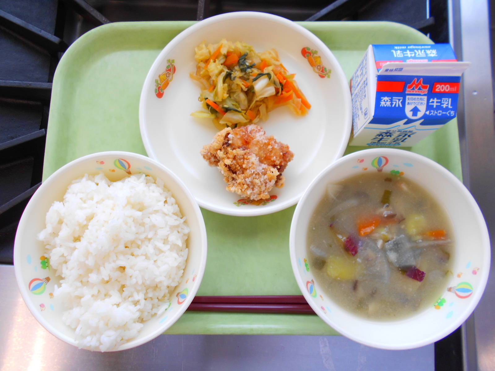 HOME > お便り > 今日の給食 > 11月7日 11月7日 入力日2025年11月7日 閲覧数6 ≪献立≫ ごはん 牛乳 鶏肉のから揚げ 具だくさんみそ汁 野菜いため ☆☆一口メモ☆☆ 具たくさんのみそ汁には、やさい・とりにく・さつまいもなど、 いろいろな食ざいが入っています。 みそには、たんぱくしつやビタミンがふくまれていて、 体を元気にしてくれます。 たくさんの食ざいを入れることで、 えいようのバランスがよくなり、 おなかもこころもあたたまります。 一覧へ戻る 次へ