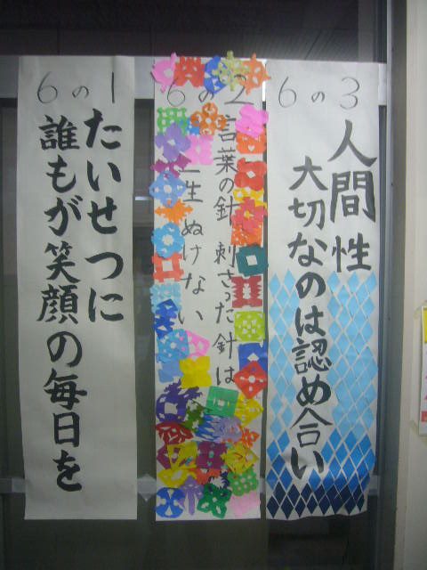 HOME > お便り > フォトギャラリー > 11/5人権標語 11/5人権標語 入力日2025年11月5日 閲覧数47 人権集会に向けて、1年生から6年生までの全クラスで取り組んだ人権標語を職員室前のろう下に掲示しています。 前へ 一覧へ戻る 次へ