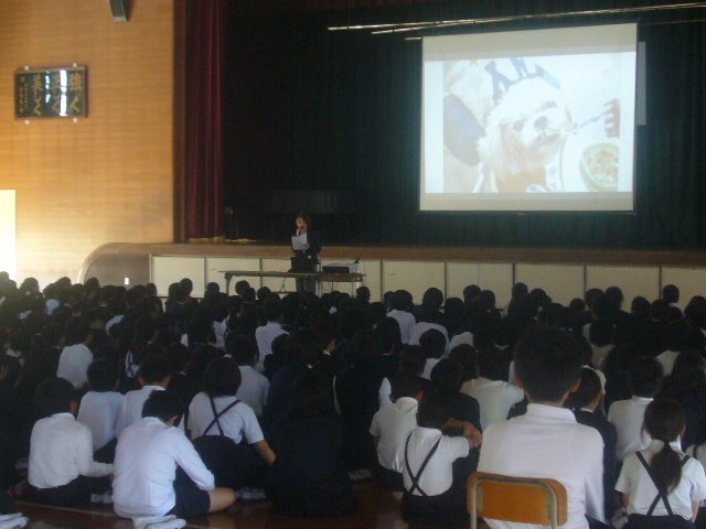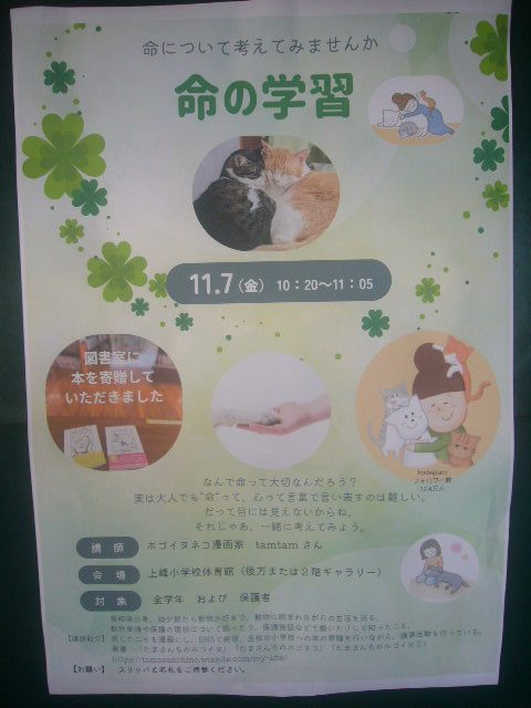 HOME > お便り > フォトギャラリー > 11/7命の学習_TamTamさん 11/7命の学習_TamTamさん 入力日2025年11月7日 閲覧数12 長崎県諫早市から動物の保護活動をされているTamTamさんに来ていただいて、全校児童に話をしていただきました。保護猫や保護犬の様子や保護活動の現状、何よりも「命を大切に」という思いが上峰小の子供たちに伝わったと思います。学校に保護猫や保護犬を紹介する本も寄贈していただいています。飼育委員会の子供たちが準備や運営を頑張ってくれました。 一覧へ戻る 次へ