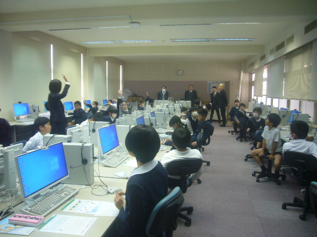 HOME > お便り > フォトギャラリー > 12/17オンライン英会話視察 12/17オンライン英会話視察 入力日2025年12月17日 閲覧数72 長崎県の川棚町教育委員会から3名の先生方が来校され、外国語活動の時間に4年生がやっているフィリピンの先生とのオンライン英会話の授業を視察されました。物おじせず、クリスマスソングに合わせてダンスをしたり、笑顔で英語でやり取りしたりしている子供たちの様子をたくさんほめていただきました。 前へ 一覧へ戻る 次へ