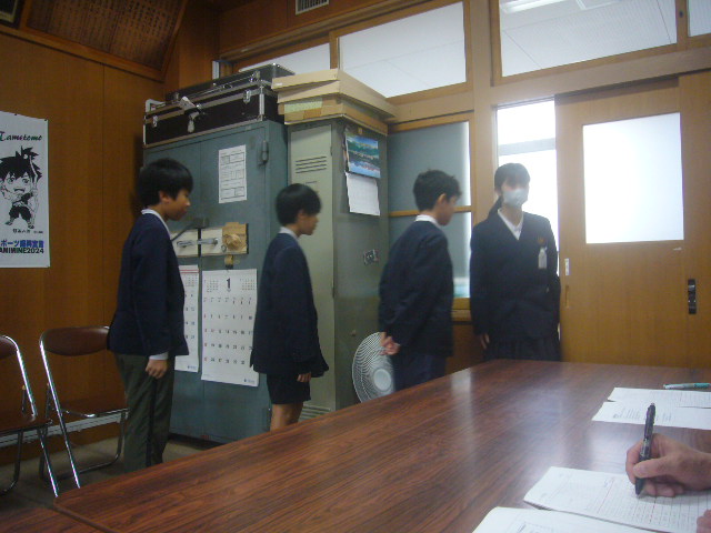 HOME > お便り > フォトギャラリー > 12/19マナー学習_6年生 12/19マナー学習_6年生 入力日2025年12月19日 閲覧数88 今週は午後の時間を使って、6年生がマナー学習の一環で集団面接に挑戦しました。校長室への出入りや面接中の所作、言葉遣い、服装などを評価しました。大人に近づいている6年生にとっては普段と違う雰囲気の中で、緊張もありましたが、しっかり受け答えをしようという姿勢がみんなから見られました。 前へ 一覧へ戻る 次へ