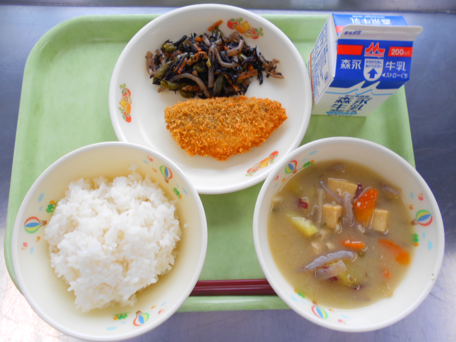 HOME > お便り > 今日の給食 > 2月16日 2月16日 入力日2026年2月18日 閲覧数27 ≪献立≫ ごはん 牛乳 アジフライ ひじきの炒め煮 さつま汁 ☆一口メモ☆ ひじきは縄文時代から日本人が食べている海藻です。 低カロリーで食物繊維、カルシウム、などが豊富です。 ひじきは乾燥させて売られているものは、水で戻して使います。 水につけておくと、重さが10倍になります。 茎の部分を使った「ながひじき」と、 芽の部分を集めた「めひじき」の二種類が多く、 給食では小さめの「めひじき」を使っています。 前へ 一覧へ戻る 次へ