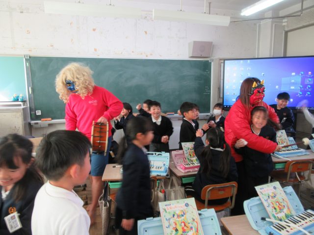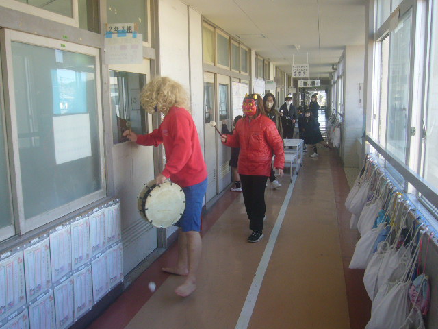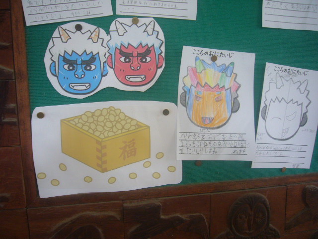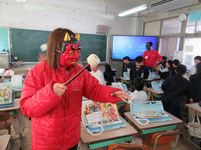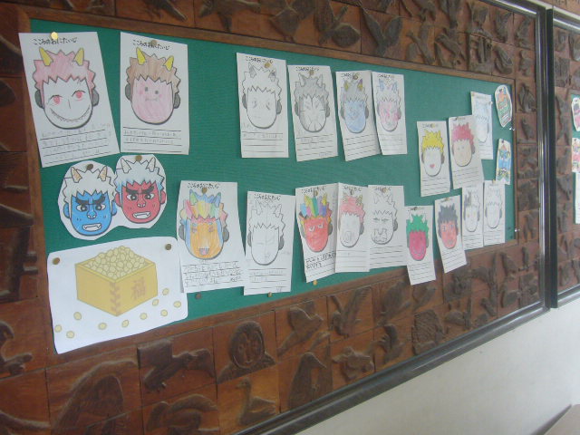 HOME > お便り > フォトギャラリー > 2/6節分 2/6節分 入力日2026年2月6日 閲覧数37 今週、2月3日は立春の前日で「節分」でした。「豆まきをして鬼を退治した」「南南東を向いて恵方巻を食べました」と低学年の子供たちが報告をしてくれました。校内にも「おにたいじ」に関係する掲示があります。ある学年の教室には、こわい鬼が入ってきていましたが、みんなでやっつけていました。梅の花が満開で良いにおいがしています。 前へ 一覧へ戻る 次へ