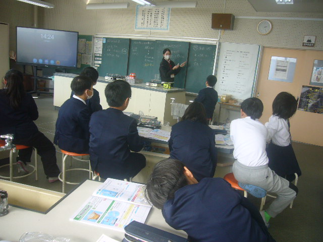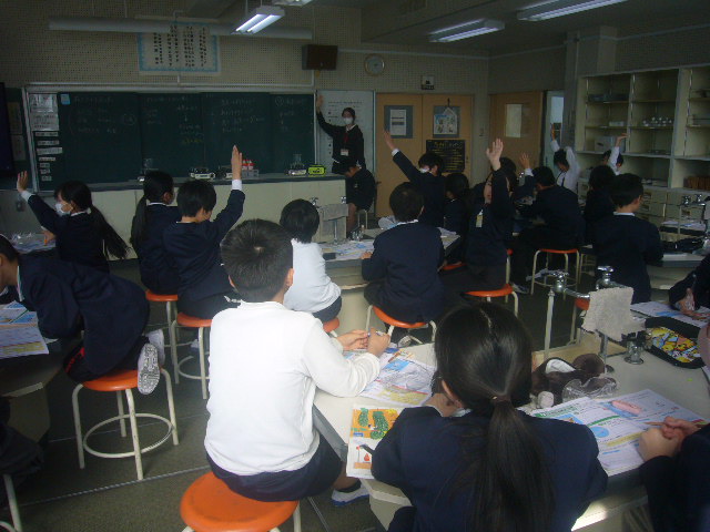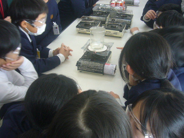 HOME > お便り > フォトギャラリー > 2/9姿を変える水_4年生 2/9姿を変える水_4年生 入力日2026年2月9日 閲覧数17 4年生が理科室で水を温めて、その様子を観察していました。ガスコンロに火をつけ、ビーカーに入った水を温めると、ビーカーの内側に水滴がついたり、湯気やあわが出だしたりと時間が進むとともに様子が変わってきます。湯気やあわの正体が何か?みんなで話し合っていました。昔はアルコールランプで温めていましたが、ボンベ式のコンロで、早く温まり、実験も時短になっています。 一覧へ戻る 次へ