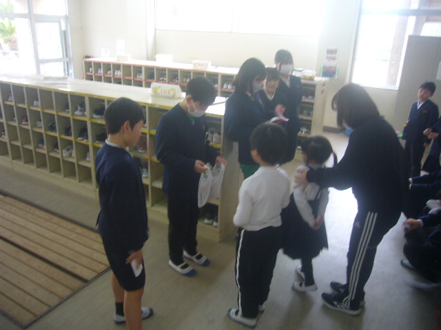 HOME > お便り > フォトギャラリー > 3/10縦割り活動の終わりに 3/10縦割り活動の終わりに 入力日2026年3月10日 閲覧数83 1年間、6年生がリーダーとなり、遊びや校内のそうじを縦割り班で活動してきました。3/9(月)は、その活動の最終日でした。そうじが終わって、リーダーと向かい合っている下級生から、1年間の感謝の言葉と手紙や折り紙で作ったかわいい花などが送られました。 前へ 一覧へ戻る 次へ