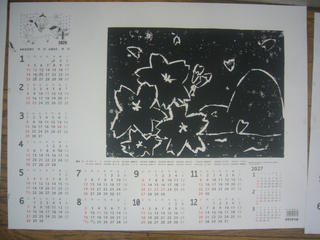 HOME > お便り > フォトギャラリー > 3/9版画カレンダー_4年生 3/9版画カレンダー_4年生 入力日2026年3月9日 閲覧数68 4年生は、2月下旬から図工の時間に木版画に取り組んでいました。下絵を描いて、線や模様に合わせて彫刻刀を使い、丁寧に作業をしていました。先週は試し刷りをしていたようですが、今日、ろう下を通ってみるとカレンダーの用紙に一人一人の作品が刷られて、版画カレンダーが出来上がっていました。 前へ 一覧へ戻る 次へ