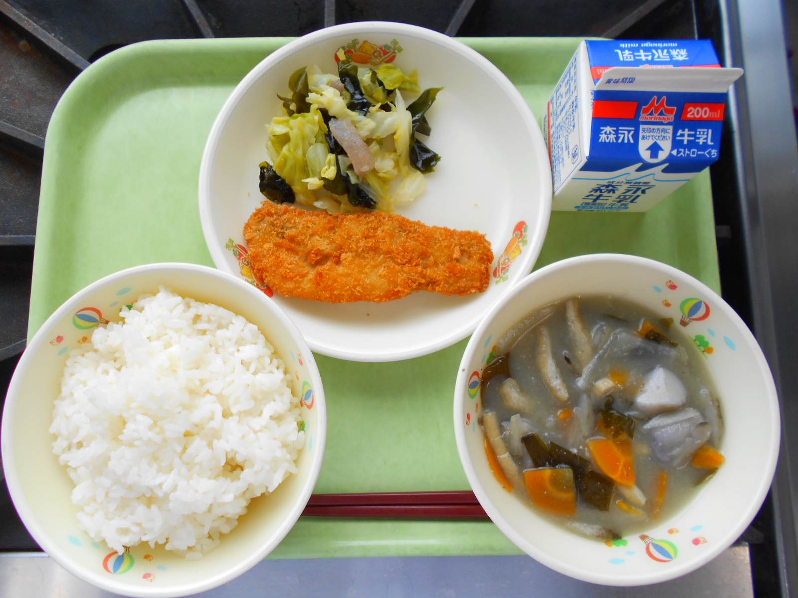 HOME > お便り > 今日の給食 > 5月12日 5月12日 入力日2025年5月12日 閲覧数140 ≪献立≫ ごはん 牛乳 さけフライ こんにゃくとわかめの酢の物 根菜のみそ汁 ★★★ 一口メモ ★★★ ごはんとおかずで栄養バランスのとれた食事をしましょう。 たっぷりのだしが使われれています。 だしは、いりこ、こんぶ、かつおぶしなどを煮て うまみ成分を引き出して、材料を煮込むときにつかうものです 。日本では、このだしの力で、野菜や豆腐などを おいしく食べる工夫をしてきました。 前へ 一覧へ戻る 次へ