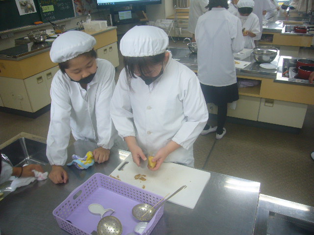 HOME > お便り > フォトギャラリー > 6/3調理実習_5年生 6/3調理実習_5年生 入力日2025年6月3日 閲覧数210 5年生が家庭科の時間に、ジャガイモを使って調理実習をしていました。ごつごつしたジャガイモの皮むきは難しそうでしたが、ピーラーを使う子が多い中で、包丁をうまく使って丁寧に皮をむいている子もいました。 前へ 一覧へ戻る 次へ