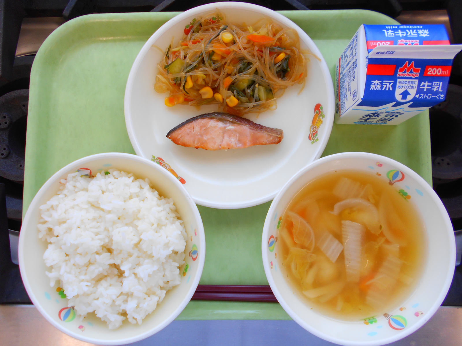 HOME > お便り > 今日の給食 > 9月19日 9月19日 入力日2025年9月25日 閲覧数42 ≪献立≫ ごはん 牛乳 鮭の塩焼き 春雨の炒め物 肉団子のスープ ☆☆一口メモ☆☆ 魚には、体に大切なたんぱくしつがたくさんふくまれています。 たんぱくしつは、筋肉やほねをつくるもとになります。 また、魚のあぶらにはDHAやEPAとよばれるえいようがあり、 頭のはたらきをよくしたり、体の中を元気にしたりします。 いろいろな魚を食べて、元気な体をつくりましょう。 前へ 一覧へ戻る 次へ