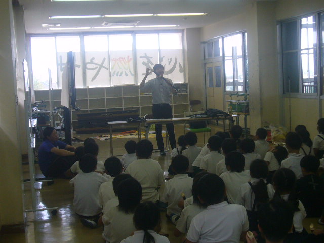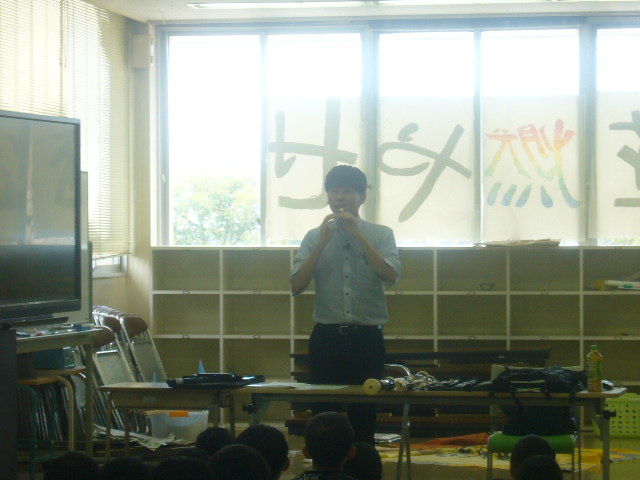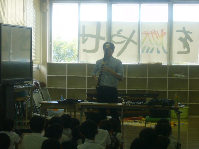 HOME > お便り > フォトギャラリー > 9/30リコーダー講習会_3年生 9/30リコーダー講習会_3年生 入力日2025年9月30日 閲覧数91 3年生になると、音楽の時間にリコーダーを使います。今日は、1・2・3組合同で、リコーダーの講習会をしてもらいました。子供たちが持っているソプラノリコーダー以外にも、アルトやテナーバスといった大きなリコーダーやソプラニーノ、クライネソプラニーノなどの小さなリコーダーを見たり、音色を聞いたりしました。子供たちが良く知っている曲の演奏もあり、興味津々の1時間になりました。 前へ 一覧へ戻る 次へ