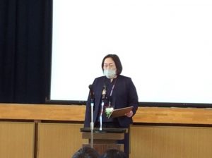 生活の話では、自転車に乗るときには、ヘルメットをかぶること、は(早寝早起き朝ご飯)る(ルールを守ろう)や(やっぱり帰ろう!もう5時だよ)す(するぞ!勉強!10時まで)み(みんなそろって進級だ!4月8日)について話がありました。