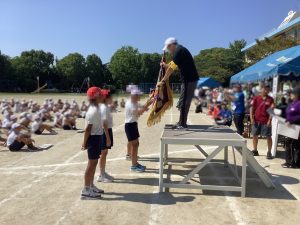 令和7年10月12日(日)運動会を開催しました。雨の心配もなく、滞りなく運動会を実施することができました。厳しい暑さの中、保護者様、地域の方々、卒業生など、多くの方に応援に来ていただき、子どもたちもいつも以上に張り切っていました。ありがとうございました。