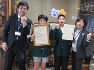 HOME > 活動の様子 > 校内スケッチ > 体力向上優良校に対する県教育長表彰 体力向上優良校に対する県教育長表彰 入力日2026年3月2日 閲覧数12 令和7年度体力向上優良校として、本校5年2組が県教育長表彰(奨励賞)を受賞しました。スポーツチャレンジの部「あくりょく部門」で優秀な成績を収めたとのことです。クラスを代表して2名の児童がしっかりと賞状を受け取りました。 一覧へ戻る 次へ