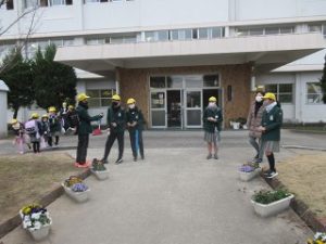 HOME > 活動の様子 > 校内スケッチ > 運営委員会による「あいさつ運動」 運営委員会による「あいさつ運動」 入力日2021年2月2日 閲覧数494 先週の金曜から今週水曜にかけて、登校の時間にあわせて、運営委員会の5,6年生があいさつ運動をしています。 先生と共に正門と南門に立ち、「おはようございます」と声をかけています。 また、気持ちの良いあいさつができた人にはカードを渡し、 給食中に「あいさつが上手だった人」を全校放送でお知らせしています。 「あいさつ」は、人と人をつなぐたいせつなものです。 子供達からもっともっとあいさつの輪が広がっていくといいなと思います。 前へ 一覧へ戻る 次へ