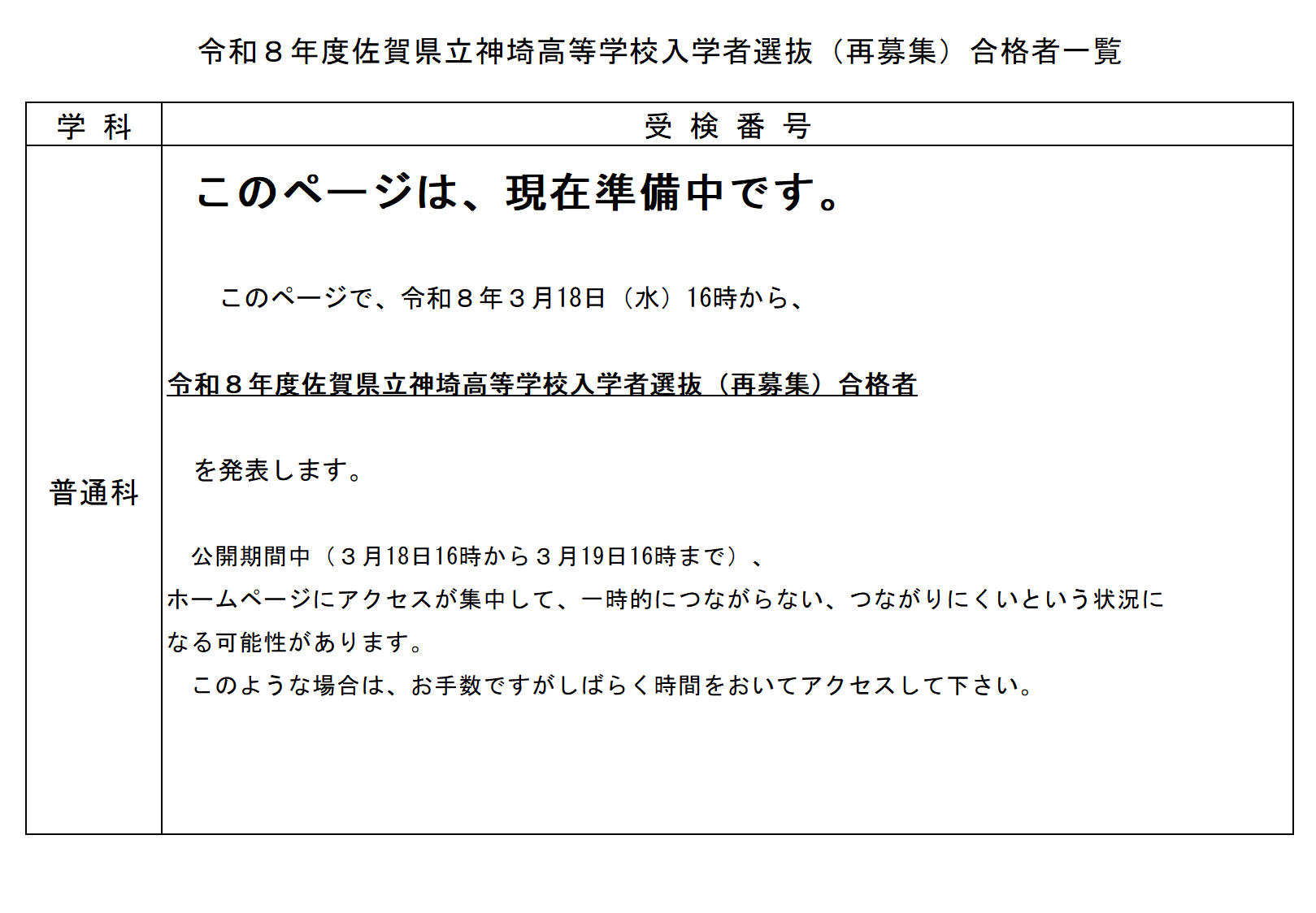 令和8年度再募集合格者発表