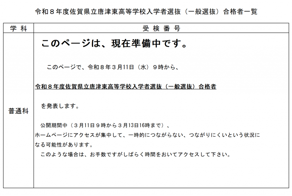令和8年度一般選抜合格者発表