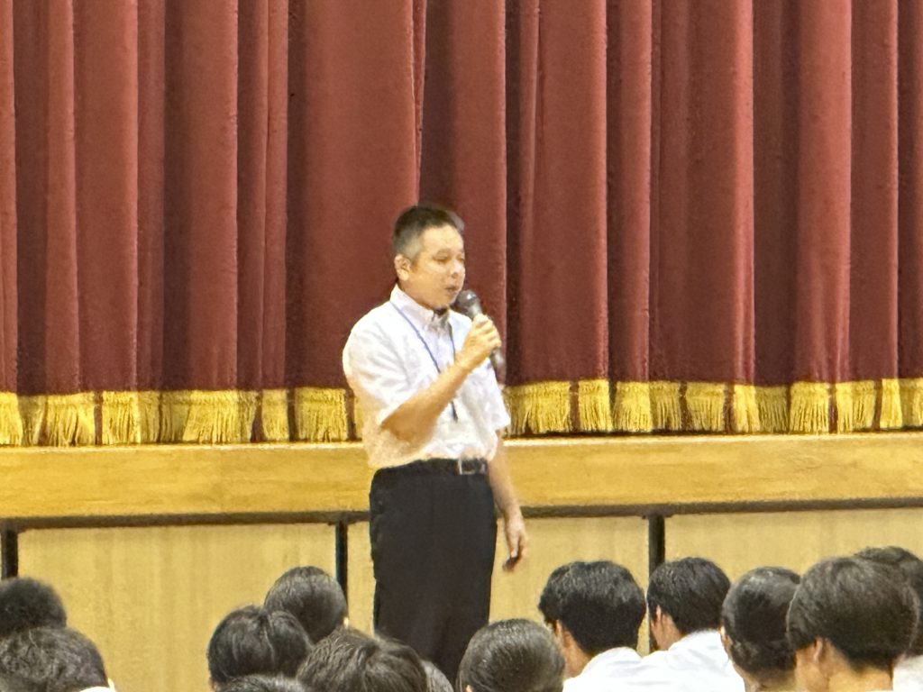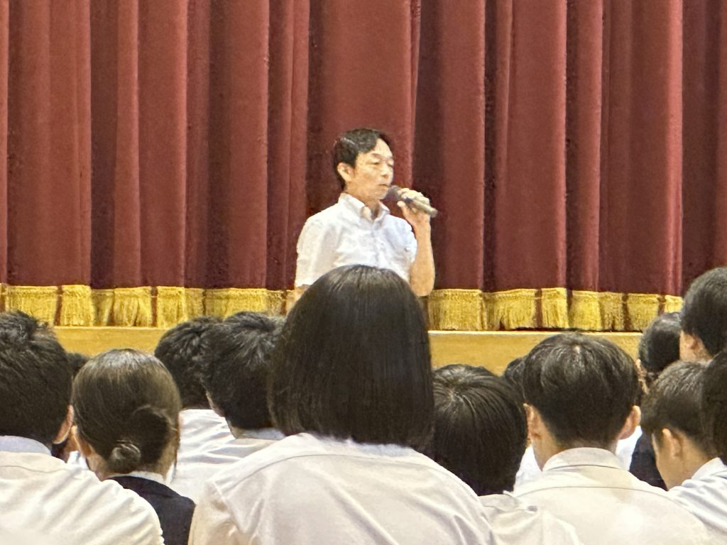 会では、初めに矢次康浩教頭先生が「受験は団体戦、現役生はこれから伸びるから、仲間と同じベクトルで共に戦ってほしい」と檄を飛ばされました。次に進路指導部長の田中秀太郎先生からは「学校の授業で学ぶ基礎基本をとにかく大切にすること」「模擬試験の復習をしっかり」とより具体的なアドバイスをいただきました。最後に学年主任の森淳一先生からは受験への基本姿勢についてのお話、また今後の教室での過ごし方についての注意などがありました。