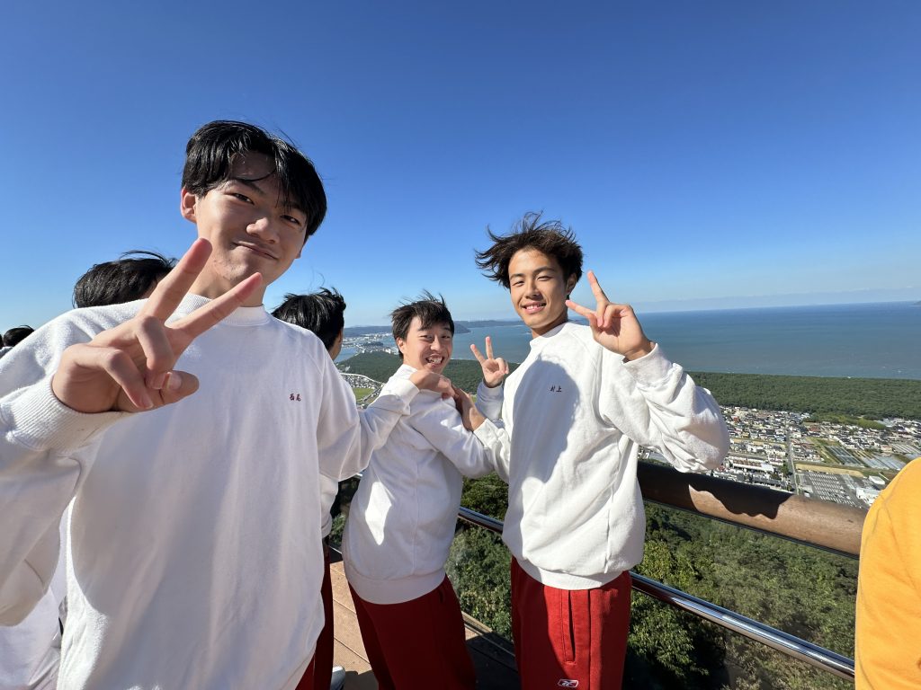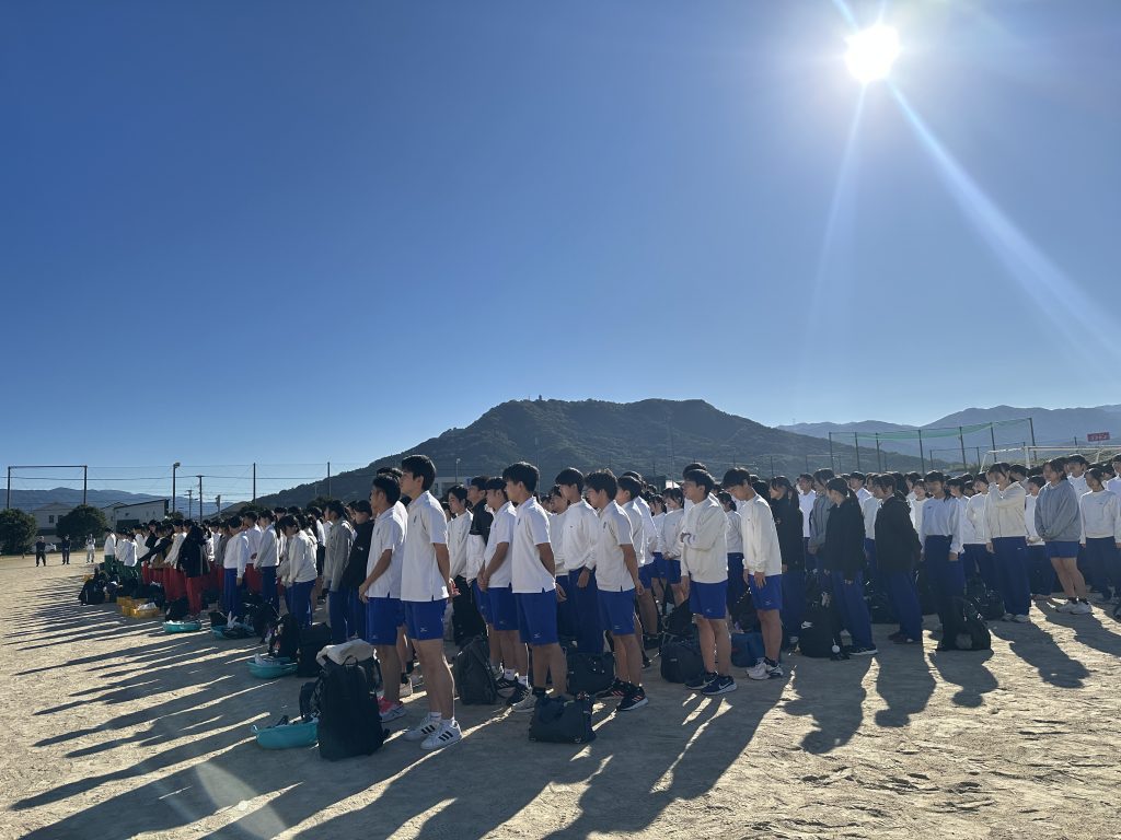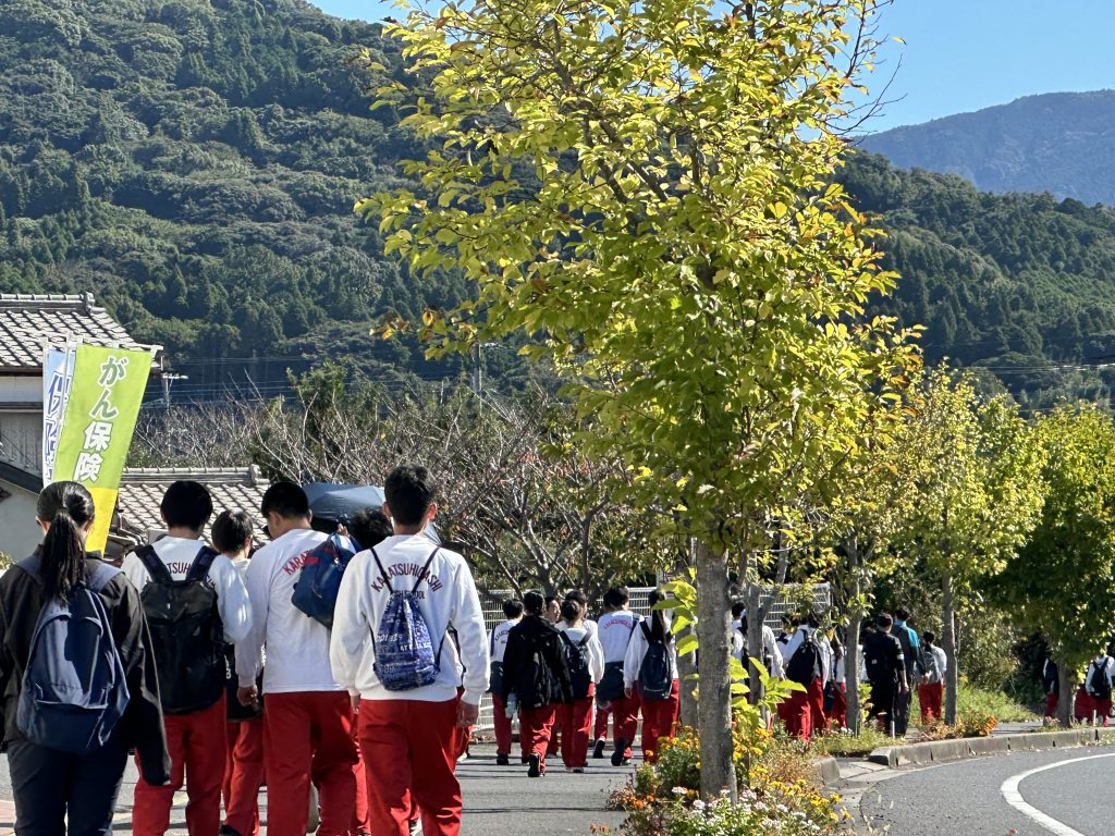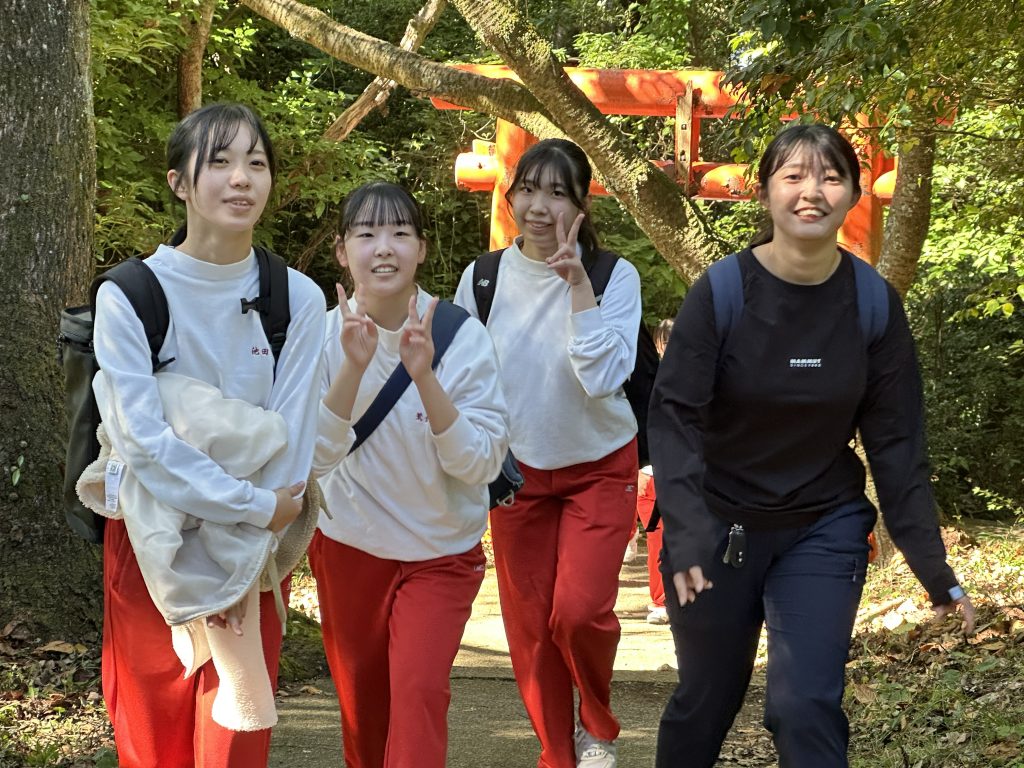 10月29日(水)に本校の開校を記念して、全校生徒による鏡山登山が行われました。天候にも恵まれ、涼しい気候の中、生徒たちは声を掛け合いながら頂上を目指していました。登頂後は生徒会企画も行われ、楽しく充実した時間となりました。